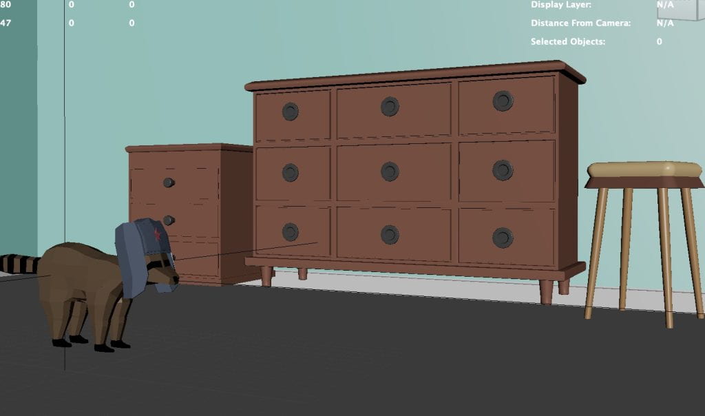 It was a pretty dull week in terms of arts, and besides the assets that I worked on Unity, there’s not much else to show in terms of what I did this week. I did help with some of the aesthetics of the game, in that I suggested the core idea of the game, of a soviet raccoon trying to search for cake in an American governement’s house, and the whole house is designed to look like its a 50s American house. I wanted the levels to have this specific shade of blue because a lot of movies from the time used to use it to highlight anything that was placed in front of it, make it stand out.