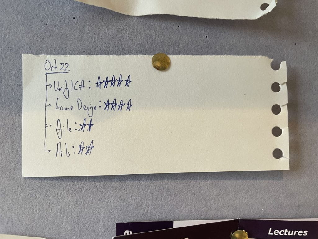 In terms of arts and design, I think that’s my strong suit, especially arts and thinking about what matters the most. I should lean into this side quite a bit more because there’s some serious potential. I should really take up more online classes on game design principles, as that really helped me through the game jam as well, and if I’m being honest I’ve only just started learning design. I’m also terrible at UX, UI, Graphic design and just generally gestalt principles stuff, so thats worth focusing in on more as well.