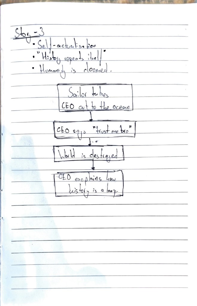 The moment I got “Illusion of Choice” as the first prompt, I immediately thought this was a writing assignment for a choice-based game. I started thinking about the different ways I can play with the player’s emotions. I thought about the ways I could make two different players feel 2 different things, and how that would influence their choice.