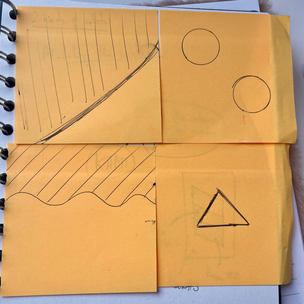 So after drawing a bunch of shapes on sticky notes, for some reason they reminded me of this scene from Charlie Chaplin’s Gold Rush.