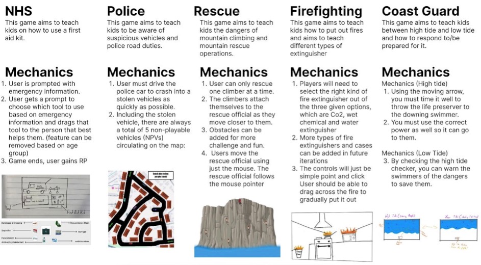 For the final version of the game, we ended up removing 2 of the mini games for the same reasons mentioned. We eventually ended up developing the NHS, firefighting, and the coastguard mini game only. Out of those, the coastguard mini-game couldn’t be fully developed because of scope.