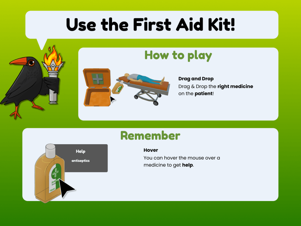 - NHS — Teach kids on how to use the first aid kit with drag and drop mechanics