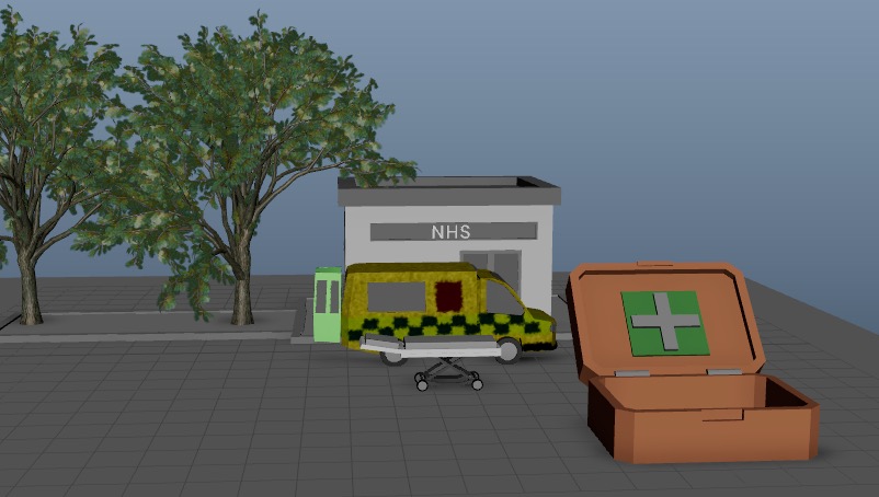 I also contributed some other 3D models to contribute to the look and feel of the RTS scene, and to provide assets for the NHS scene:
