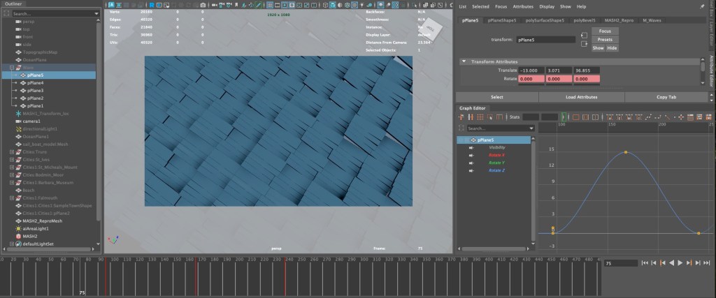 This was pretty simple stuff: an instance of a cube with 2 rotation keyframes, replicated in a grid with some timing offset.