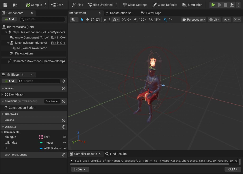 Once the model was rebuilt in Unreal Engine, it would be compiled to a character blueprint, where all the final modifications would take place.
