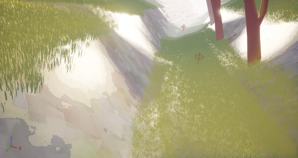 The second challenge, was that the collisions did not register as intended in unreal engine, leading to clipping in moving characters, and clipping in foliage on the terrain.