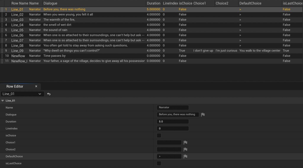 The dialogue system was powered by a data table in unreal engine, so I could change the dialogues later on in development if I felt there was something wrong.