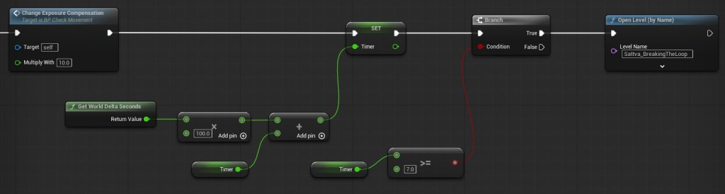 Once the player stops, the exposure begins to increase. Once the exposure makes the whole screen white, the level changes.