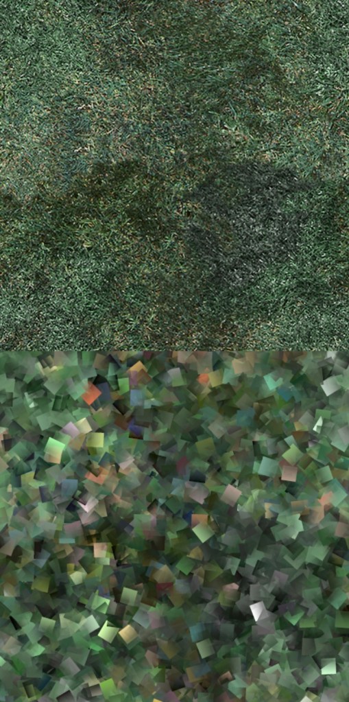 Photo-manipulated Pixar 128 textures (‘Pixar One Twenty Eight’ 2025) were used to paint the textures of the various landscapes.