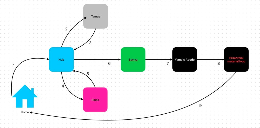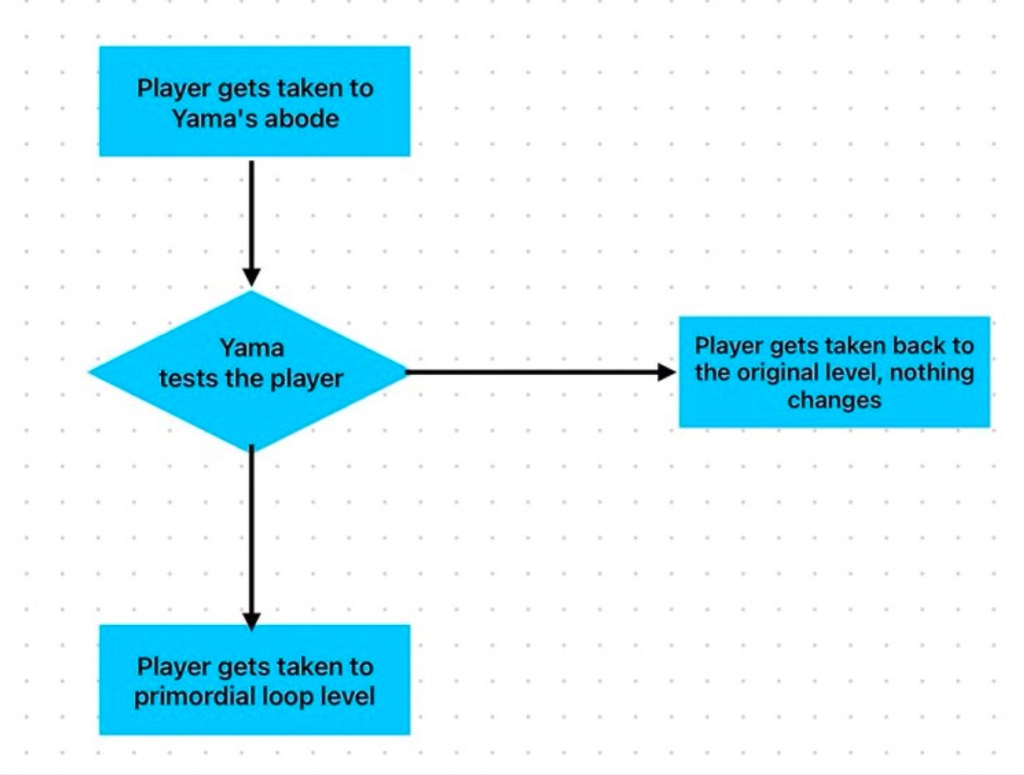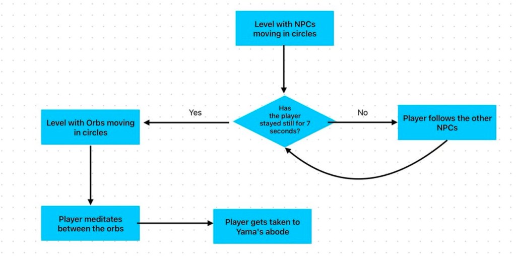 To exit this level, the player would have to meditate, and after meditation, they would be transferred to the ship that takes them to Yama’s abode.