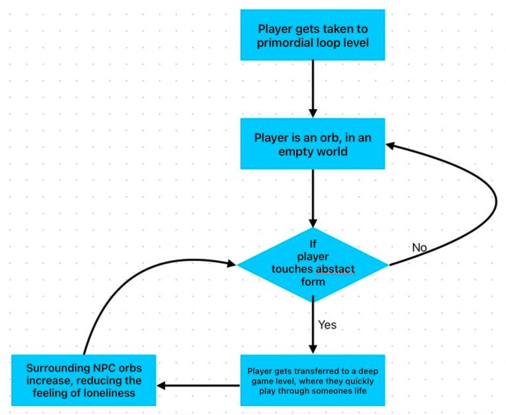 Here, the user is an orb in a dark environment, representing a soul, searching for anything, any trace of anything.