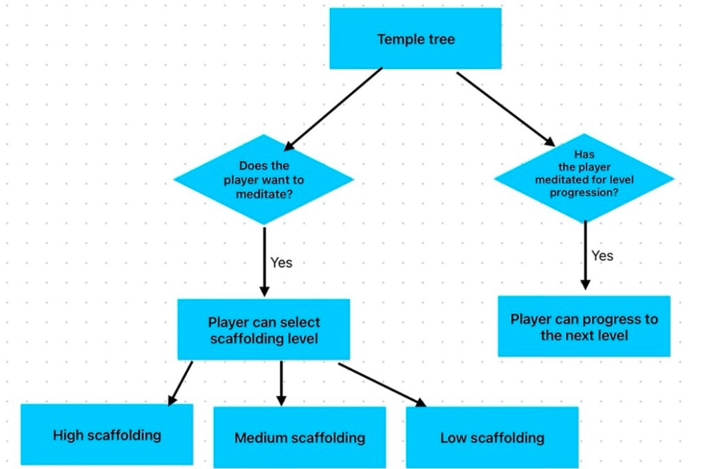 Through the game, the user would have to meditate only 3 times to progress through the game. But if they wish, they can meditate more using the scaffolding